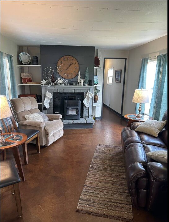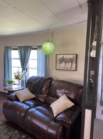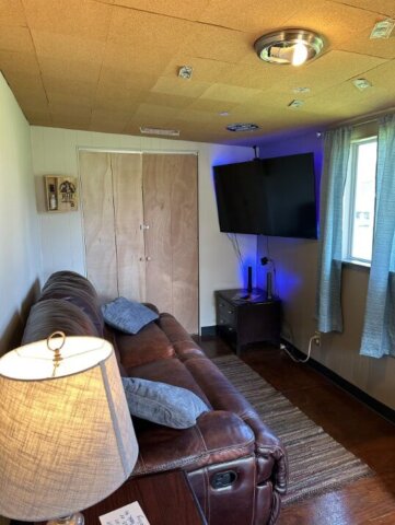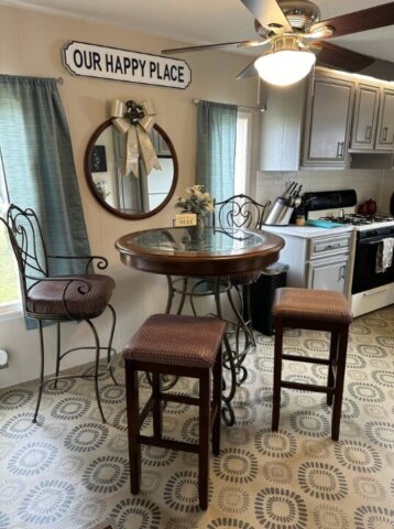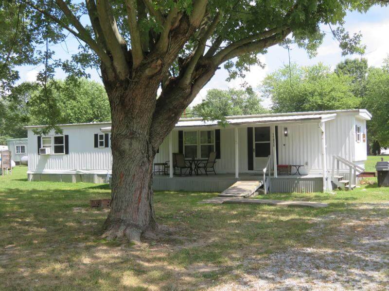 Escape to Rocky Fork Lake…one of Southern Ohio’s best kept secrets! Extensively renovated in the Spring of 2023, this 1970 singlewide home is up to date on luxury and style with many surprising amenities! Boasting a retro theme, this 2 or 3 bedroom home sells amazingly furnished, and wonderful creativity is on full display by the owner’s professional interior design! The centerpiece of the living room is a cozy fireplace and gas stove! An eye-catching remodeled kitchen with appliances, brown paper suede flooring, a cork ceiling decorated with messages and signs in the TV lounge addition, a unique beer bottle cap floor in the bathroom featuring a retro blue corner tub and shower, and accent photo painted distressed paneling! The TV lounge room could easily serve as a 3rd bedroom! Many surprises and artistic details await your discovery! Value added updates include a new metal roof, vinyl replacement windows, and an efficient gas furnace! A covered front porch is ideal to enjoy summer evenings on a quiet street and offers a ramp to accommodate loved ones! 2 generous lots with mature shade trees and a camper hook up for when guests come calling! The 20×24 boat garage is complete with a concrete floor and electric! Minutes to the water and docks! Offering immediate possession, this opportunity can serve as a retirement destination, vacation home or income-producing investment! Schedule your showing today! This one will bring a smile to your face!