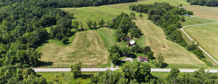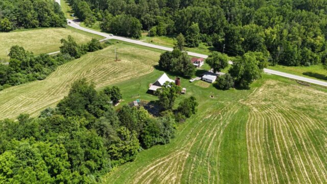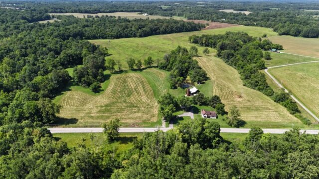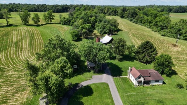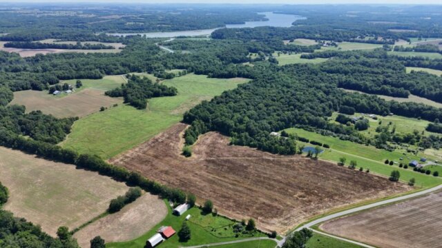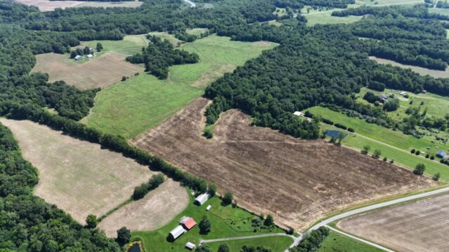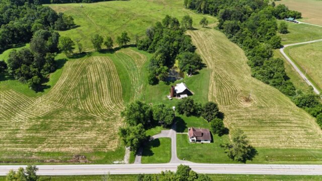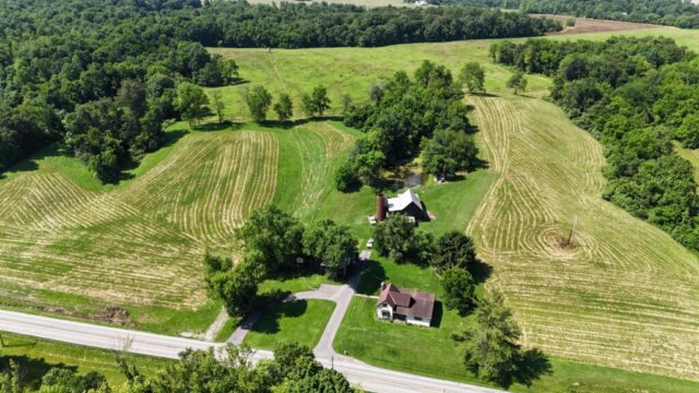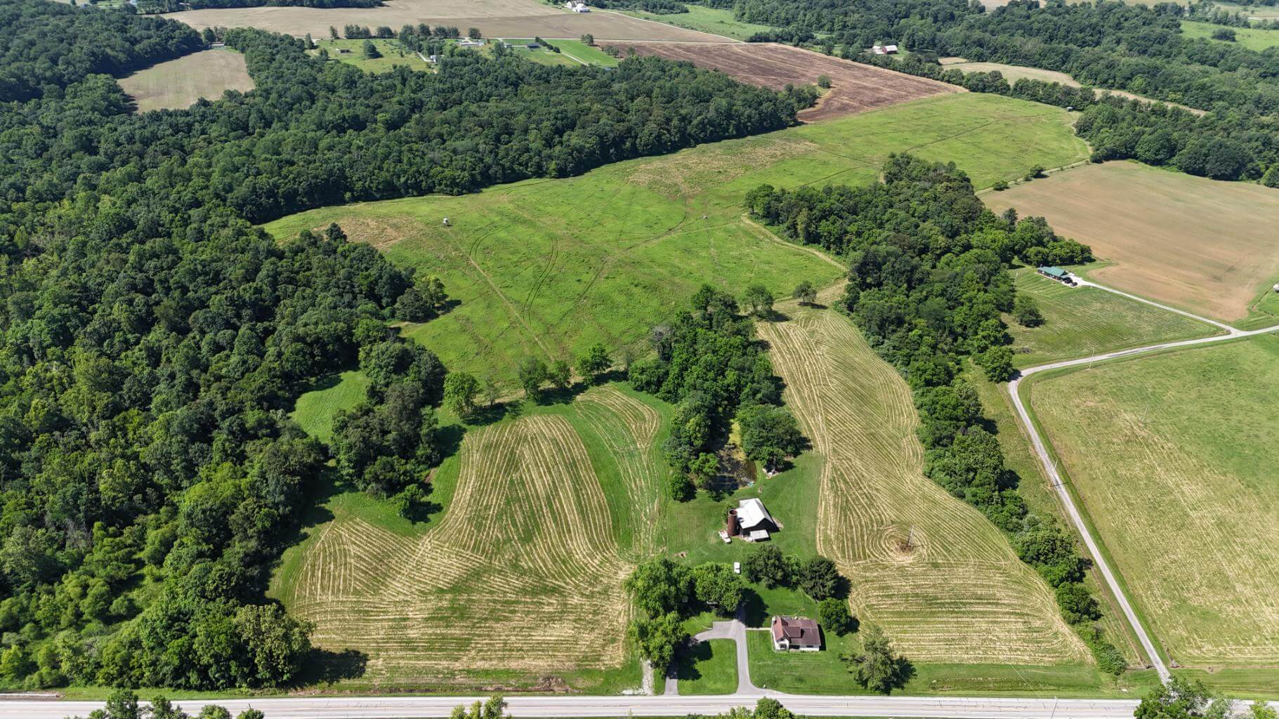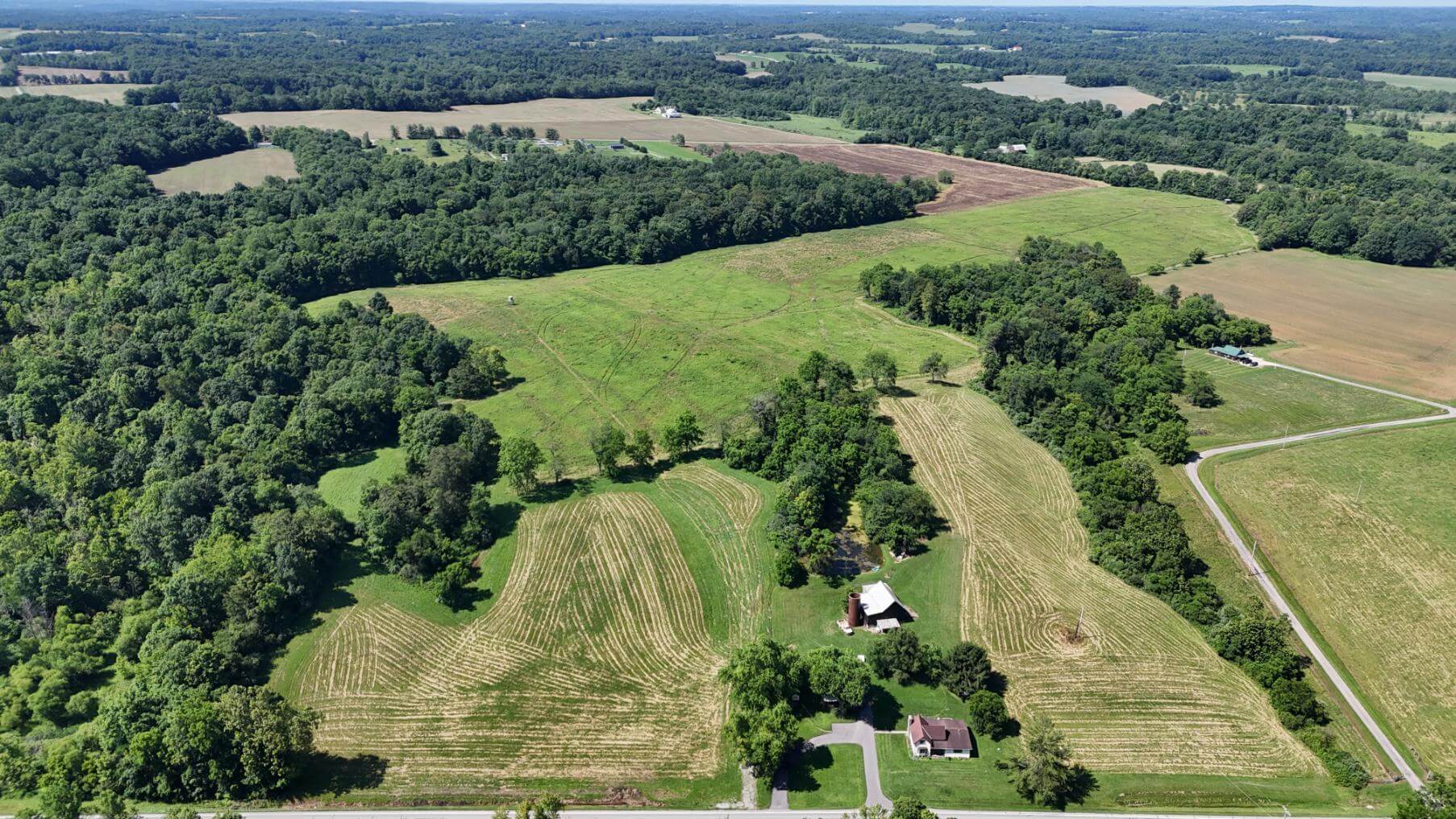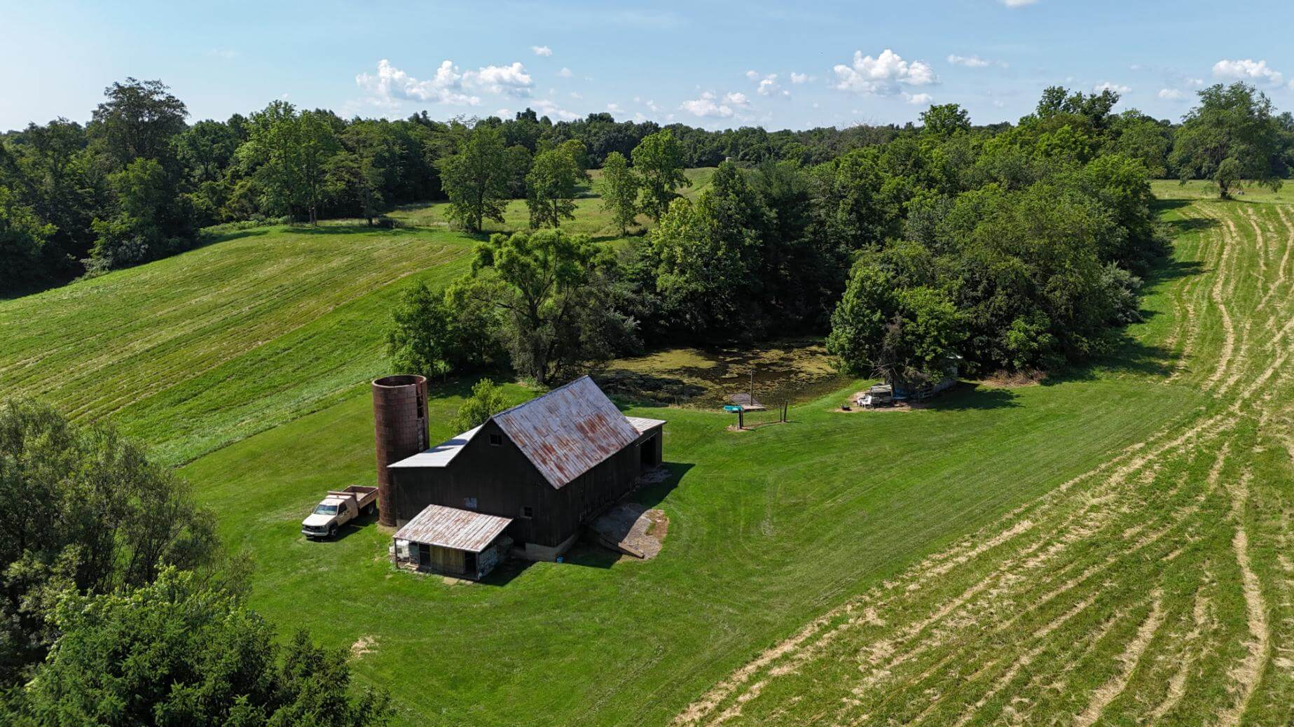97.88 acre multipurpose farm! Joining Rocky Fork Lake State Park! Renovated 2 story 3 bedroom, 2 bath farmhouse with corner stone fireplace, oak kitchen, master bedroom suite! Wood framed, heated garage/shop, carport, wood framed livestock barn with basement and silo! Spring fed pond, 75 acres tillable, 42 acres in CRP producing income, 12 acres pasture, scattered woodlands, and thickets! Prime whitetail hunting regularly produces 12 point bucks being harvested! Frontage on 2 roads! Be on the water and boat docks in minutes!